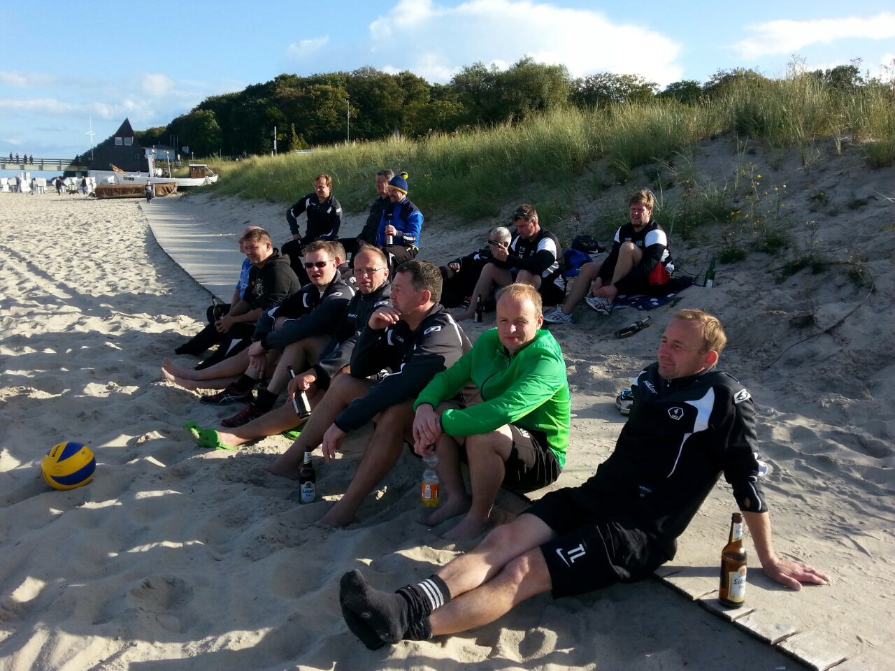 Am 3. Oktober genossen dann alle noch einmal das schöne Wetter am Strand. Die Männer spielten Volleyball. Dabei bemerkenswert bei Familie Kralitschka standen 3 Generationen auf dem Feld. Die Frauen machten unter Anleitung von Manja Sterl eine Pilates-Stunde. Am Abend traf man sich dann gemeinsam am Seebrückenvorplatz, um den Höhepunkt der Ausfahrt, das Höhenfeuerwerk anlässlich des Tages der Deutschen Einheit gemeinsam am Strand zu genießen. Dieses Feuerwerk war auch in diesem Jahr wieder sehr spektakulär. Am nächsten Tag ging es dann für die meisten nach Hause.