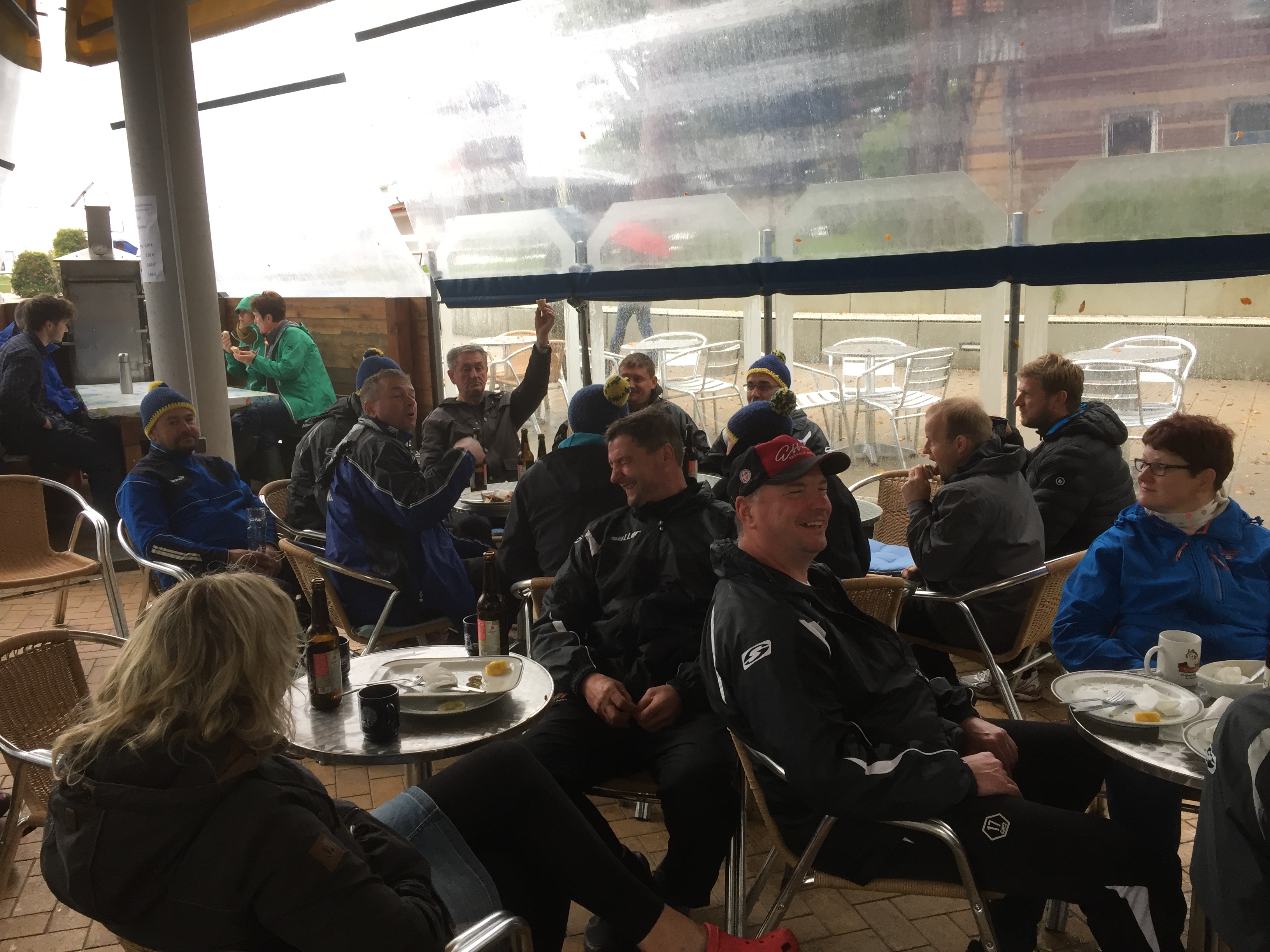 Während der gesamten Tage ging man gemeinsam in Karls Erdbeerhof frühstücken, wo die Mitarbeiter bereits eine lange Frühstückstafel eingedeckt hatten, so auch am Sonntagmorgen. Während die Spieler sich nach dem Frühstück am Sonntag so langsam auf den sportlichen Vergleich mit Empor Koserow vorbereiteten, ließen sich es die Frauen in Karls Erdbeerhof gut gehen. Nach dem Mittagessen ging es dann für die Männer auf den Sportplatz, wo man noch ein Derby-Nachwuchsspiel der E-Jugend von Koserow gegen den Tabellenführer FC Insel Usedom (2:2) als Zuschauer beobachtete.